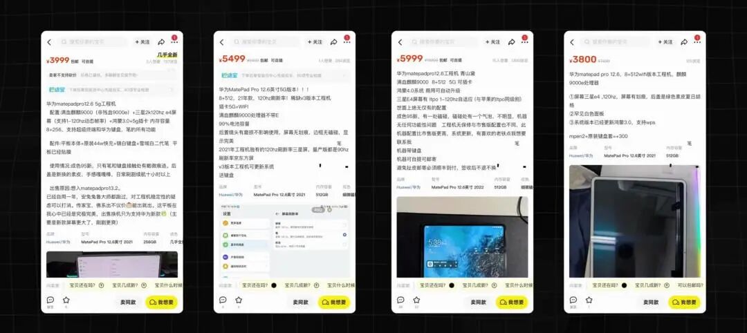 21 款的 MatePad Pro 的用戶能夠敲個 1 。然則可能非常多人不曉得的是,上一代工程機(jī)全是來自三星的 120hz 屏幕,臨上市換成為了國產(chǎn)的 OLED , 以至于乃至此刻你在某些海鮮市場上其實能夠搜到麒麟9000+高刷的工程機(jī),搭載的是都是 120 Hz 的三星版本,和5g手機(jī)只能當(dāng)4G 同樣憋屈。